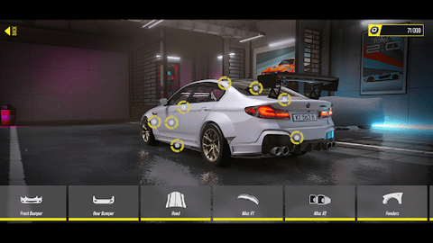 3、我们还可以对其进行改装,让我们获得最佳性能的赛车驾控体验,选择适合的配件进行改装;