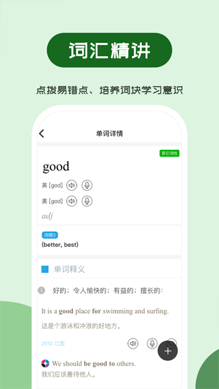 3、有效提升口语和单词记忆能力,扩大自己的词汇量,熟练背诵单词。