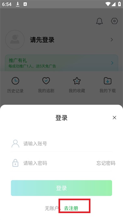 3、然后在登录页面,我们只需要点击下方的【 去注册 】就可以去进行注册;