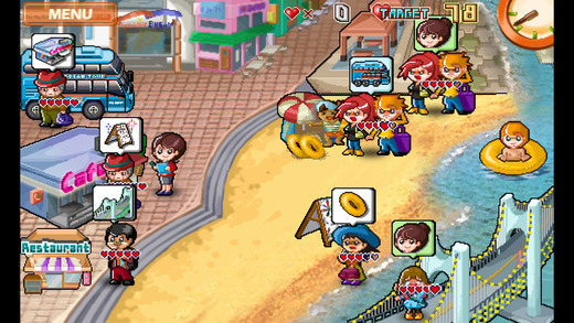 在不同的景点顾客会有不同的要求,你必须迅速地接待并完成他们给出的考验,才能获得爱心和资费支持,进而扩展你的旅游事业。