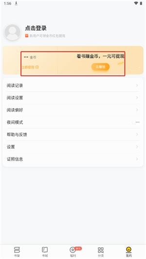 2、点击中间的福利栏,童工每日签到领取金币,金币可以兑换成零钱提现