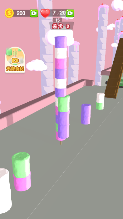 2、你需要串成各种的棉花糖,去完成非常多的闯关的挑战;