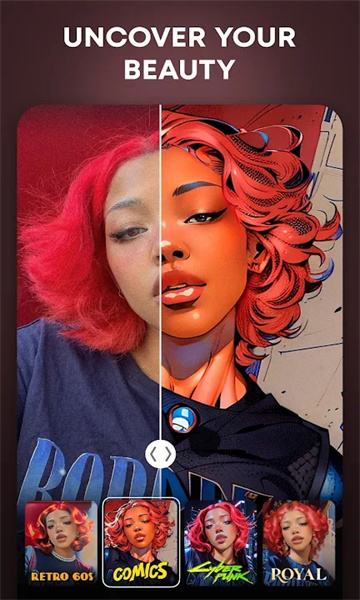 浏览由我们的 3D 艺术专家精心打造的 AI 制作美学和外观的广泛选择。选择您喜欢的一张,然后将其应用到您最喜欢的照片上——只需轻轻一按!