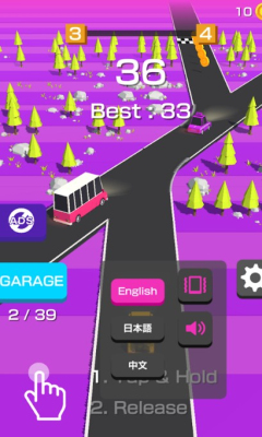 游戏中玩家的目的很简单,点击屏幕控制车辆变化方向,游戏中点击屏幕,车辆向前移动。手指离开屏幕,车辆停止。不断的跳转跑道,挑战更远的距离,这里加入了更多的车辆可以解锁哦!
