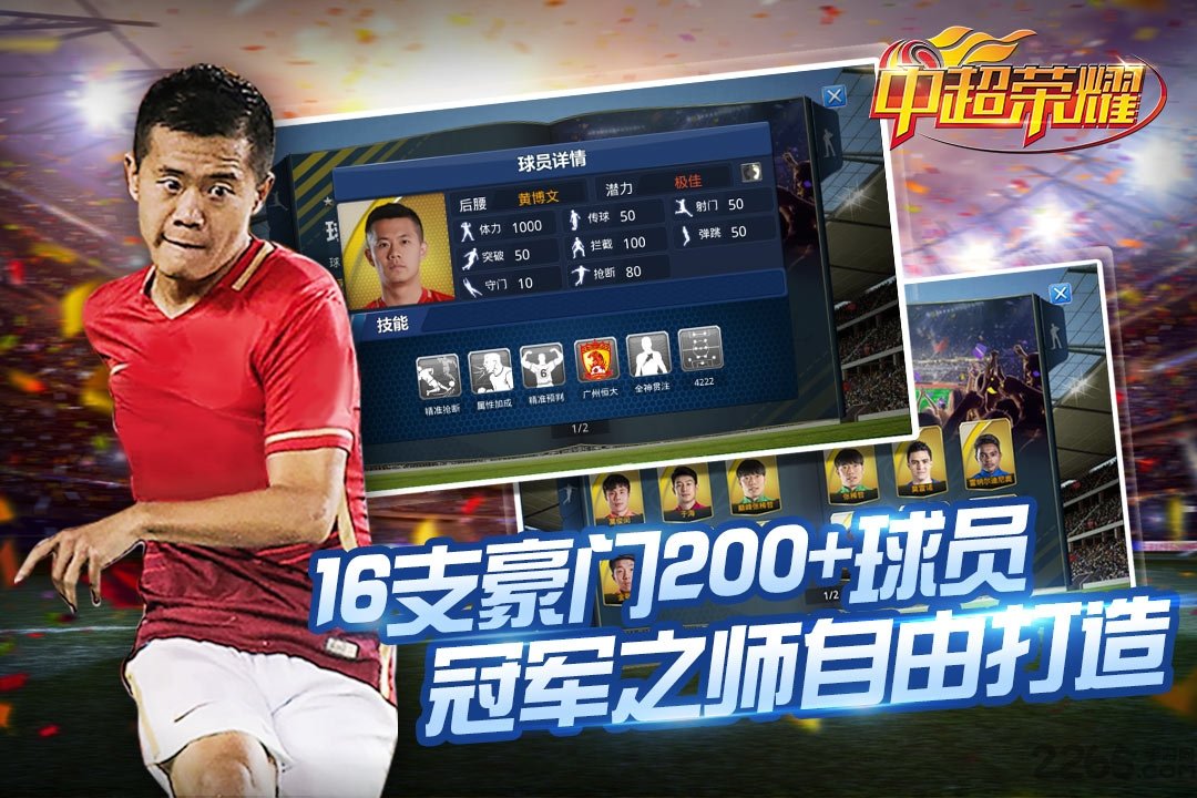 5、游戏收录了中超联赛16支豪门劲旅与200余位中超球员的真实数据;