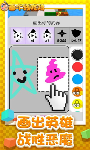 画个线吃鸡游戏的玩法很简单,玩家通过简单的操作,就能控制不断前进,你需要在关卡中画出自己的武器,这一点非常的新颖,能够给你带来全新的冒险体验,随着游戏的进行,玩家遇到不一样的关卡,它们给你带来的挑战非常刺激,能够让你感受到最为新颖的游戏变化,而且连你的角色都是自己绘画出来的,想一想就非常刺激,如果绘画功底好的人,能够得到更好的游戏体验。