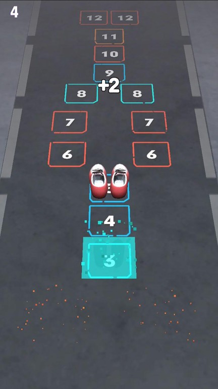 1.简单的玩法内容,只需要避开障碍物,让鞋子跳跃到有数字柱子上就行.