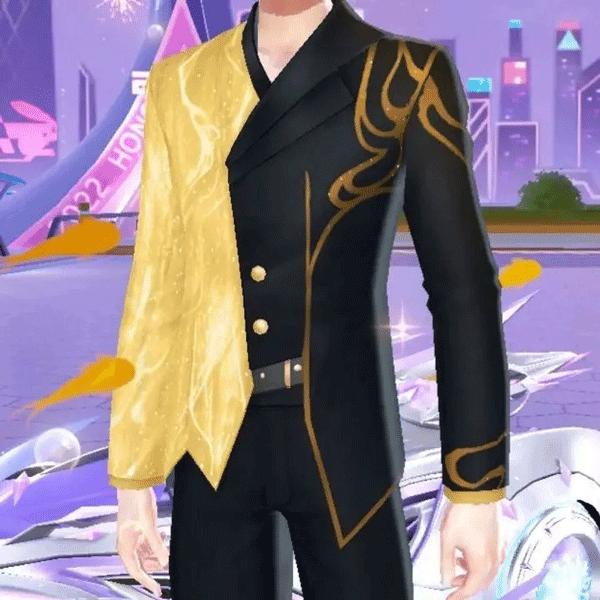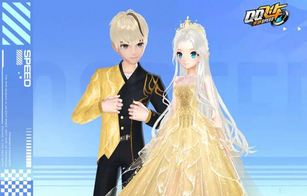 女生银白色长发,一袭金色长裙高贵非凡,周身散发的金色光芒看起来耀眼夺目;男生似海中王子登场,自带水花特效,金色与黑色拼接西装相互衬托,典雅不失风度。