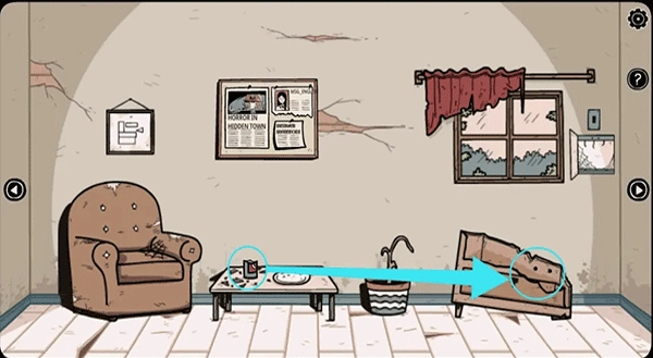 2、进入房间拿走小桌上的碎酒瓶,先将其放在右边的破损的柜子上,然后将糖倒入碎酒瓶引出柜子里的白蚁。