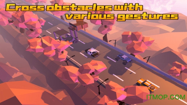 指尖上的汽车 是一款指尖赛车手游,操作十分简单,一根手指也能轻松哟喂,通过驾驶赛车在马路上躲避来往的车辆和各式各样的障碍陷阱,享受低多边形风格的景色和优美的音乐吧。