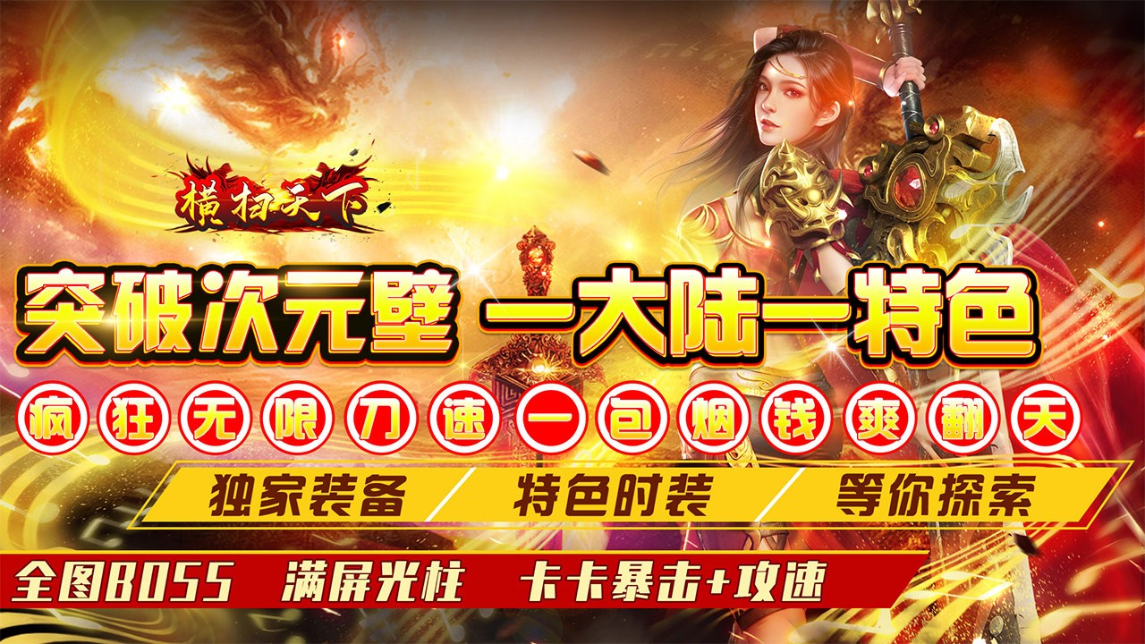 横扫天下超变打金大乱斗传奇,激情乱斗传奇竞技游戏,机甲元素设计,多元副本题材轻松尝试,无限刀传奇竞技游戏,激情乱斗竞技玩法,多元游戏场地轻松尝试,大量的游戏福利轻松获取尝试,轻松爆满屏的光柱和资源,刀刀轻松切割,刀刀轻松带毒竞技,满屏特效,轻松秒杀传奇野怪,非常值得去尝试的传奇竞技游戏。