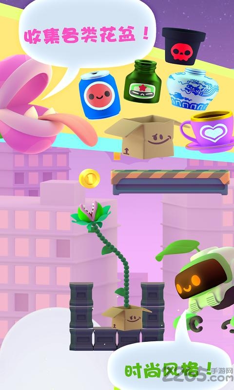 游戏的关卡 设计 多样化,还可以收集各种花盆装点植物,当然也有丰富的植物种类可以选择,趣味满满;