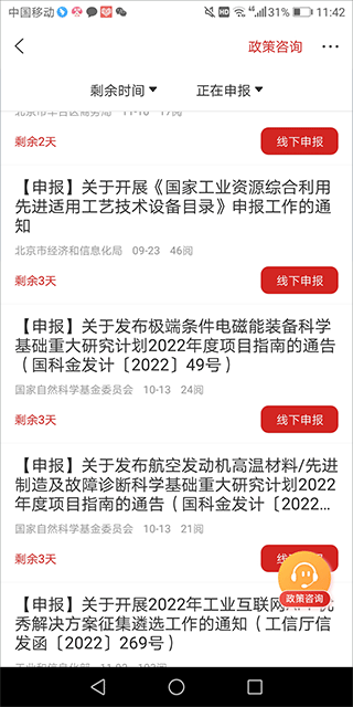 1、为用户提供今日申报版块,用户在这里能够看到今日的各种申报和征集内容,快速申报
