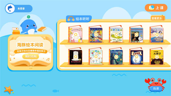 海豚绘本阅读包含神话故事、寓言故事、习惯养成、天文地理等主题模块,主题式科学分组,素质教育全面发展