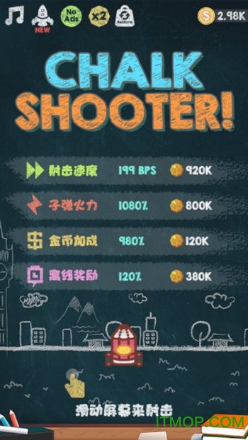 粉笔射击安卓破解版是DL工作室出品的粉彩画性质的小体积打飞机游戏,不过这里添加了数字类打砖块的设定在里面,可玩性大大增加了,趣味度也极高的,更有许多可爱酷炫的皮肤等待你去购买体验呢,不光是外表,射出的炮弹也是动态变化的!粉笔射击内购破解版简介你必须