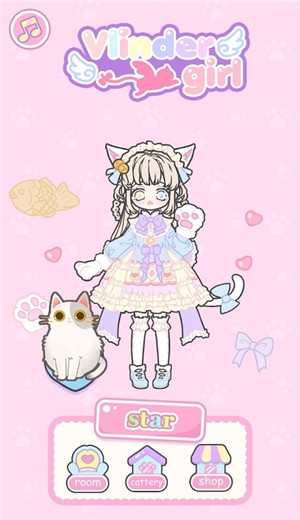 粉嫩画风,少女心爆棚,超多好看时装供你自由选择,每一次你都可以打造出与众不同的形象,装扮可爱的少女,保存壁纸和好朋友分享游戏中的女儿。