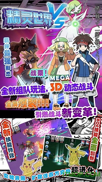 组队挑战赛——多人PVP新玩法,3D全景动态战斗,精灵的每招每式都有专属的独特镜头特写,3D粒子流的原著技能超清还原,让您领略全屏爆裂的战斗快感!