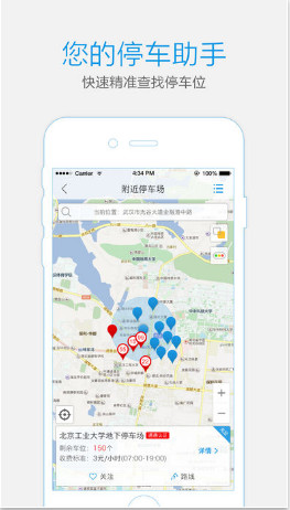 车主可以通过智能停车APP查询车位、地图导航、在线支付、缴费查询、在线投诉等整体流程服务,让泊位信息不再是一座座孤岛,方便车主快捷有效地找到停车位,避免了无效交通量带来的各种资源浪费。