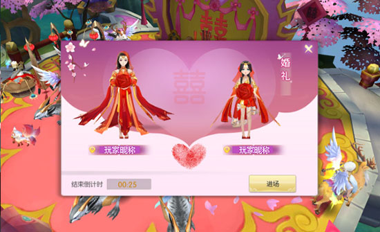 结婚场景中每10秒自动获取1次经验,每人累计可获取10次喜糖,10次红包,打开可获得丰厚奖励。燃放烟花可增加热闹度,热闹度达到520和1314出现天降红包。
