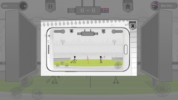 两边的火柴人后面的墙壁会让羽毛球弹回来,如果玩家成功击回去没有什么差别,但是这是让对手十分的很好位置,打到墙上基本就能得分咯~!