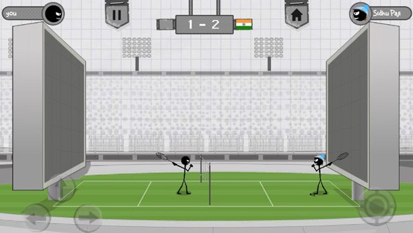 在游戏中火柴人只能前进后退与跳跃,所以玩家只要操作左边的方向键与右边的击球键即可把游戏玩得很熟了,那么火柴人的击球范围就是它手中羽毛球拍的长度,在羽毛球拍能挥到的范围内都可以将球击回去。