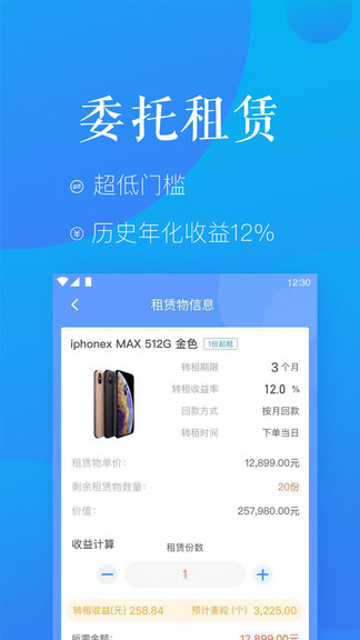1、详细的租赁收益计算,可以让用户清楚知道自己所租赁的产品收益情况;