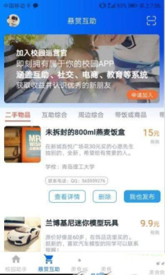 青理小镇是一款非常便利的大学生生活服务平台,这里有非常丰富的学生活动,软件严格控制用户身份,用户可以通过这款APP直接点单点餐,也可以在这里申请成为校园送餐助手,也可以在这里发布一些闲置用品,还有校园互助平台,有什么问题在这里发布,大家帮你解决