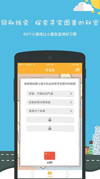 4、领取线索,探索寻宝图里的秘密,63个小游戏让小朋友坚持好习惯