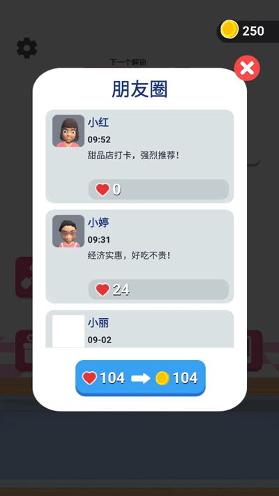 玩家制作甜品获得金币后,可以使用金币装饰自己的甜品屋,通过升级小屋的装饰来吸引更多的顾客前来品尝!