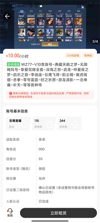 原生租号app是一款专业的游戏租号平台,提供诸多热门游戏账号租赁,满皮肤、高强度账号应有尽有,例如主流的游戏王者荣耀、和平精英、CF手游、英雄联盟、LOL手游、吃鸡、火影忍者、Steam游戏……无论是单机游戏,还是手游全都囊括其中,最大程度上满足你的租号需求