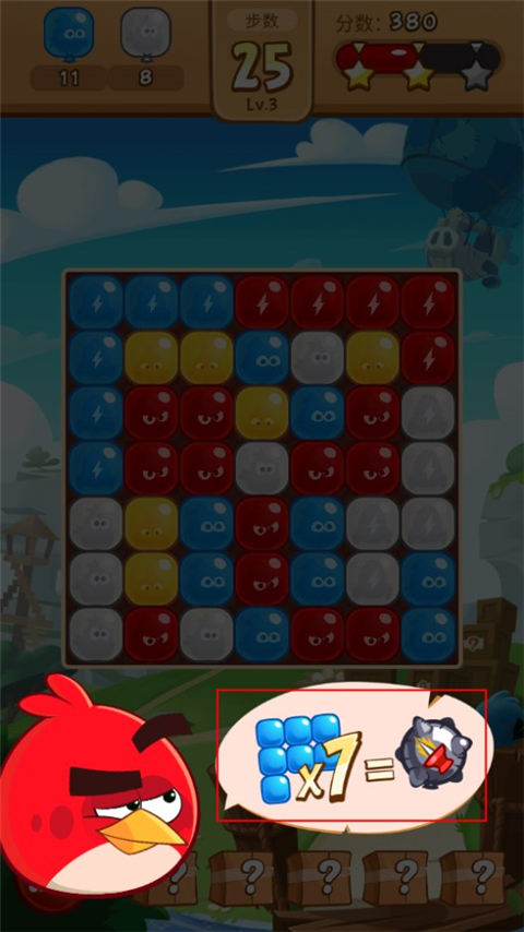 愤怒的小鸟爆破2025版游戏一改经典玩法,采取经典消除玩法机制,点击相同颜色的气球即可消除爆破,在有限的步数内使更多的气球爆破,达到目标分数即可通关,每关积分将会累积至下一关卡,游戏玩法简单,趣味无限。
