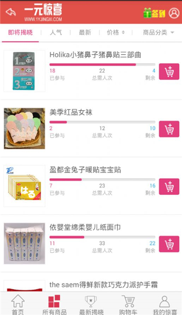 惊喜一元购是一款福利丰厚的购物软件。该软件可以帮助用户节省不少的开支,所有的商品不但有着很大的质量保障,而且非常的物美价廉,用户可以享受更多的优惠,可以用最少的钱买到最满意的商品。提供的商品类型也非常的丰富,而且有着惊喜专区,里面的商品只需要一元就可以成功的购买。