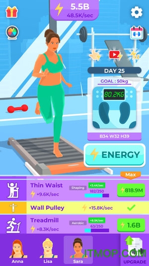 2、多种健身角色供你选择,完成任务,和他们一起发家致富;
