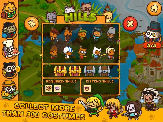 当你击败你的敌人并 收集 你在周围地图中趴着的鱼饼干时,你将获得积分,你可以用来改善猫的统计数据!