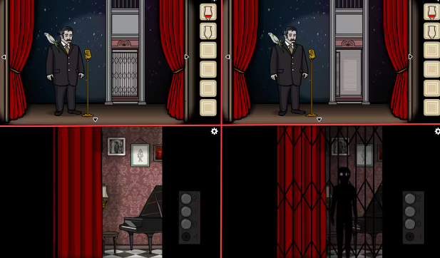 舞台视角:点击舞台幕布,《乌鸦先生的间奏曲》开始;间奏曲分三个阶段,