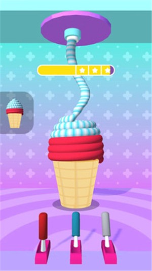 总体来说,这款游戏不具备任何的上手难度,也就是说任何年龄段的玩家都能够在游戏中成为冰激凌制作大师。拿取甜筒皮,根据客人的需求以及每一个关卡的指令,在不同口味的圣代机中为顾客制作不同形状的甜筒。细节性的方面考验到了玩家对于完美主义的追求,赢得顾客的新人,后期还将有更多的游戏关卡以及挑战等待你的诠释。