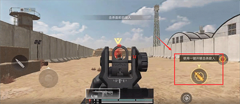 5、右手触控屏幕控制人物镜头方向,使用一键开镜开火击杀敌人。