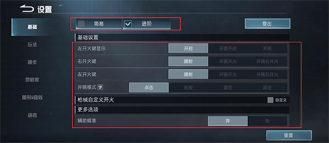 2、进入游戏后,在设置中可以对操作界面进行调整,如可以选择简易和进阶板块。