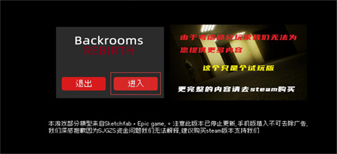 后室重生移植限制版是steam移植的后室恐怖逃脱游戏,玩家将要进入到庞大的后室世界中,探索不同的层级,搜索道具并逃离实体怪物的追捕,各种经典的场景都得到了完美的还原,在每个章节中找到隐藏的出口,顺利逃离出去。