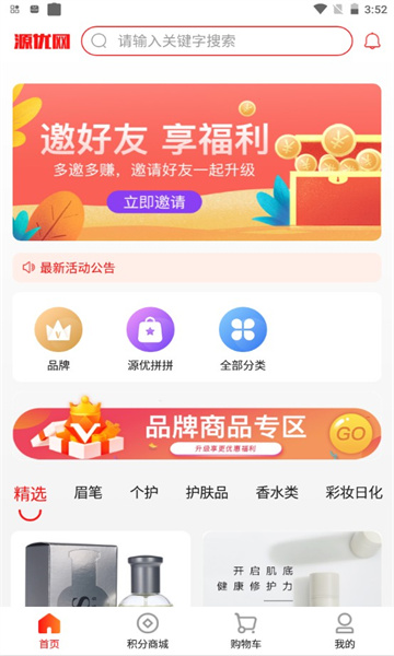 为用户带来源优网最新版,汇集国内外知名品牌商品,涵盖上百个商品品类,充分满足用户的购物需求;邀请朋友一起买买买,还有超值福利大礼可以领,千万不要错过。