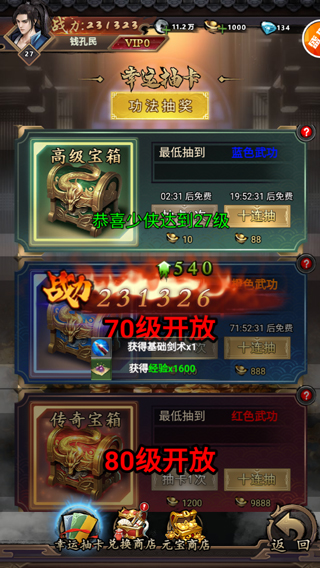 神功是实力的核心,还有武功强化,武功升星,武功洗炼,武功前缀等玩法,让你实力倍增,私人定制你的个性化神功;