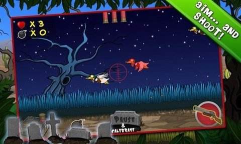 僵尸鸭子正在试图摆脱黑暗的森林。必须阻止他们成功逃脱。如果逃脱一次,将花费你一次生命,而在连续优秀射击(命中率98%),您将获得一个额外的奖金。