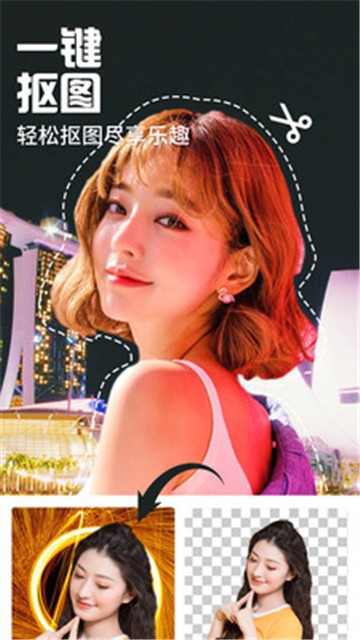 抠图美化:集成所有基础功能,抠图美化、裁剪、旋转、场景、相框、等基础美图功能应有尽有。