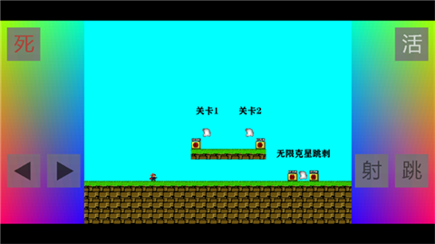 布洛坤iwanna为玩家自制的iwanna系列游戏,充满超多困难的关卡,加入横版闯关的玩法,大量的障碍物遍布其中,通过点击和跳跃,寻找隐藏的钥匙或开关,获取尽可能多的硬币和星星,解锁全新的出口,找到逃离的方法吧。