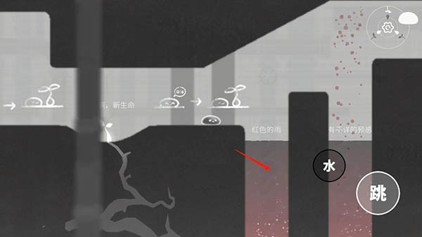 3、点击跳跃可以帮助水躲避红色的雨;
