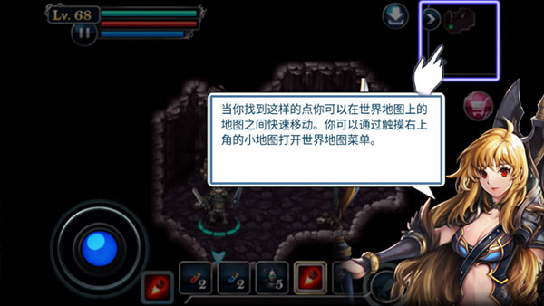 1、打开命运之石后,您可以通过触摸屏幕左下角的虚拟键盘移动你的角色;