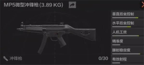 3、MP5:作为一把冲锋枪,MP5在射速以及稳定上发挥非常的出色,在游戏中的近距离作战稳定性也是非常好,在加上本身的获取难度以及上手难度,都是非常推荐的武器,本身的配件要求也不大新手也可以轻松压枪,就是武器的伤害有些低,远距离作战较差,但是整体的效果还是不错的,非常推荐。