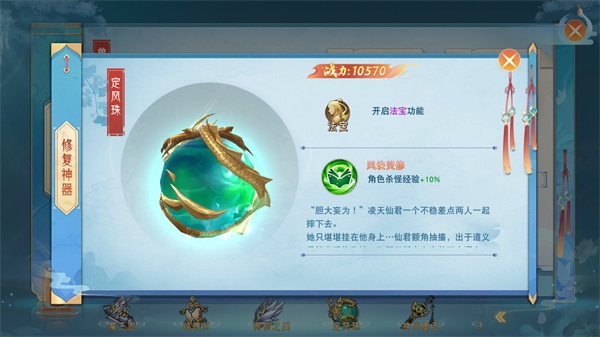 作为一件宝物,法宝可不是那么容易获得的,首先需要上仙达到110级,完成修复法宝的任务之后才能获得。