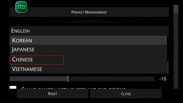 2、可以看到现在显示的是English,点击下滑到Chinese,选择即可