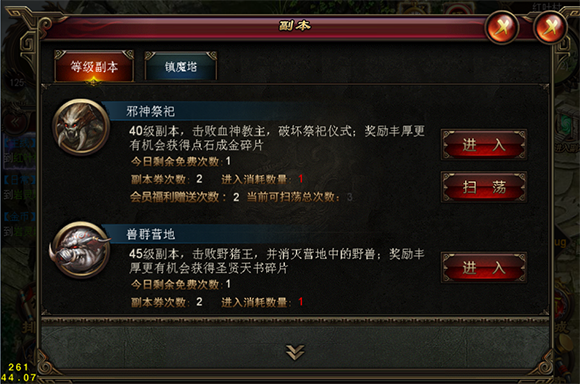 4、等级副本:6个副本每日都会有1次免费挑战机会,购买副本卷轴课额外增加2次机会。开通青铜VIP可额外增加1次机会。开通黄金VIP额外赠送2次机会。前期升级还是很客观的。